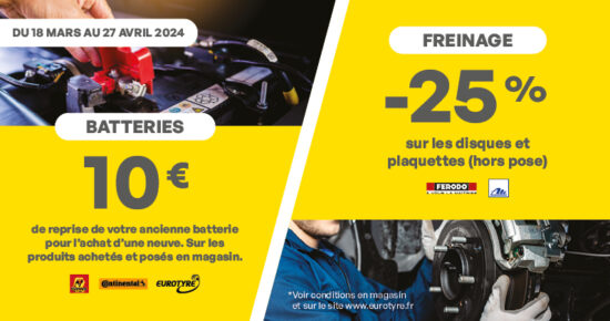 Promotions : Batteries et Freinage Du 18 mars au 27 avril 2024, profitez de l’offre sur l’entretien de votre véhicule en […]